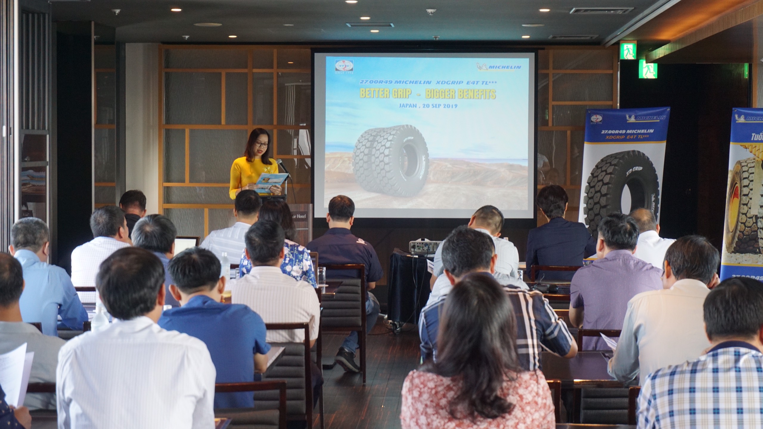 Tại buổi Hội thảo này đại diện VTTC và Michelin đã trình bày về tình hình sử dụng Lốp tại các khai trường mỏ than thuộc TKV đồng thời đưa ra sản phẩm mới 27.00R49 XD GRIP E4T T/L để đáp ứng nhu cầu sản xuất trong điều kiện môi trường thay đổi và ngày càng khắc nghiệt.